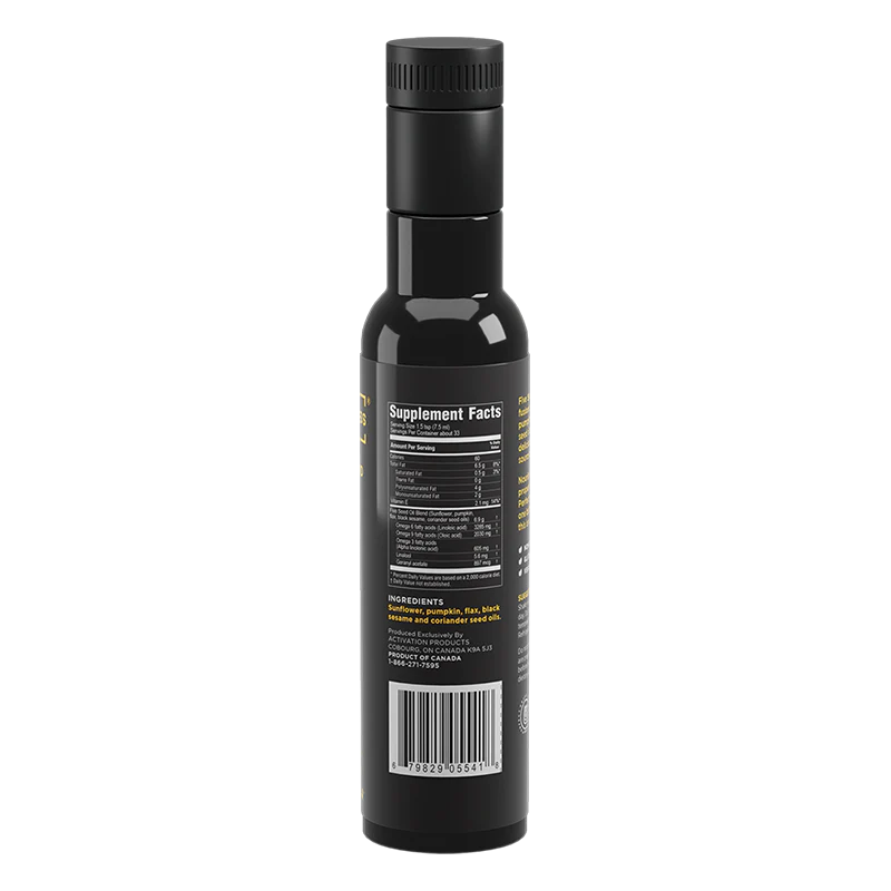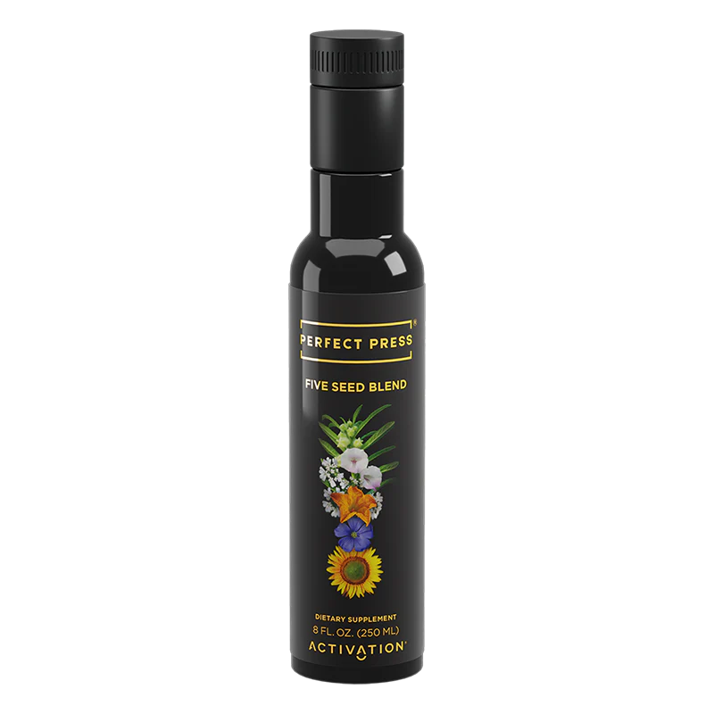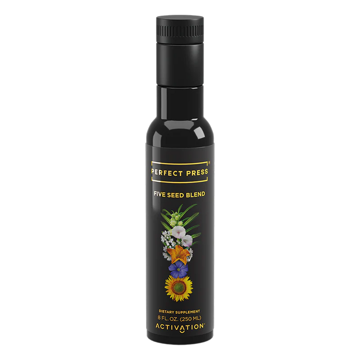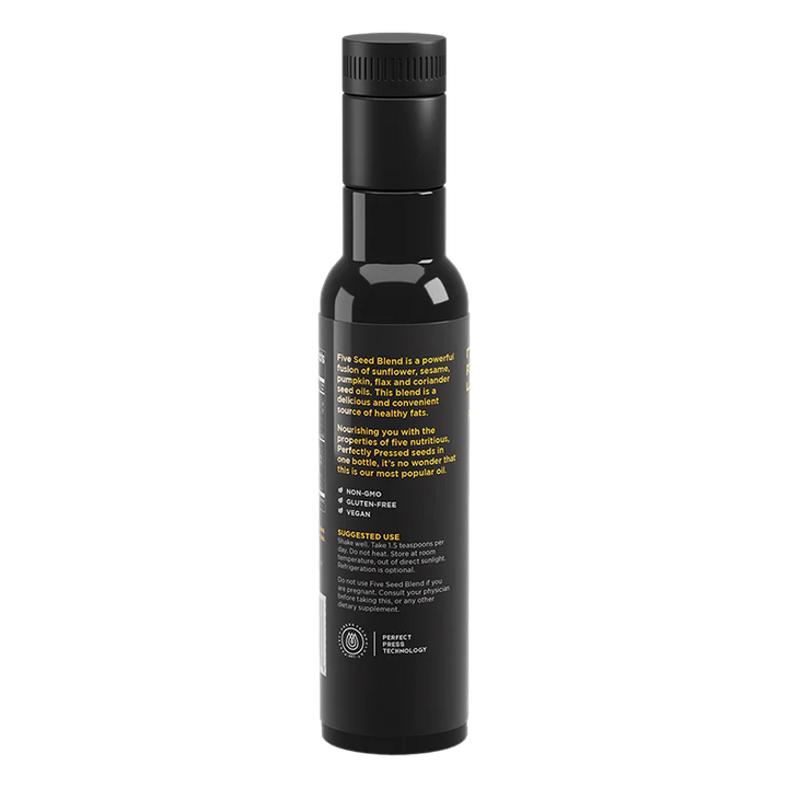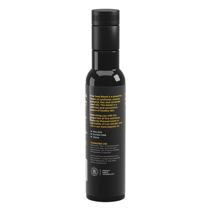 Perfect Press® Five Seed Blend is a powerful fusion of sunflower, sesame, pumpkin, flax and coriander seed oils. This blend will provide you with healthy fats and minerals for foundational nutrition. Nourishing you with the properties of five potent oils in one convenient bottle, it’s no wonder that this is our most popular oil.