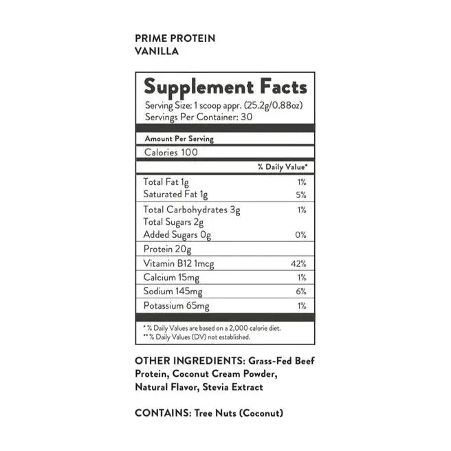 Beef bone broth powder, Sugars (maple sugar), Cacao powder, Cinnamon*, Ginger*, Sea salt, Nutmeg*, Clove*, Cardamom*. *Organic.
