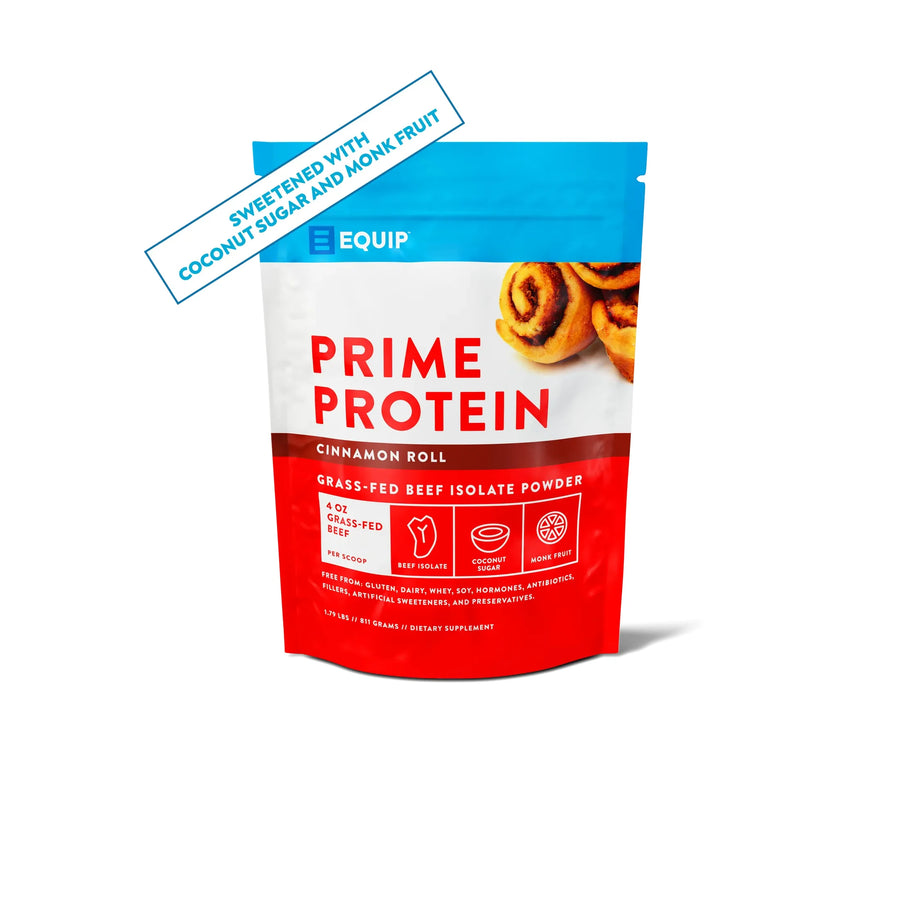 Every serving of Prime Protein contains 4 oz of grass-fed beef. That’s 21g of protein and absolutely no sugars. We sweeten this blend naturally with coconut sugar and monk fruit extract, and flavor it with real cinnamon and natural flavors for that warm, comforting cinnamon roll taste.