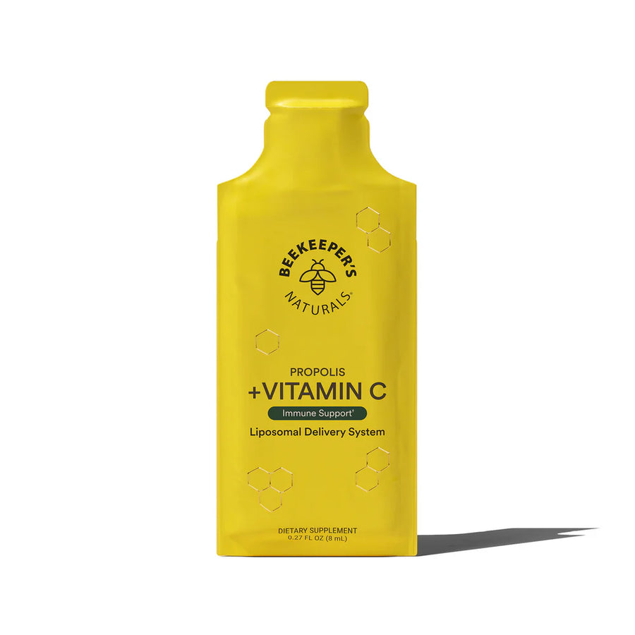Vitamin C, highly concentrated bee propolis extract, glycerin, water, organic honey, and sunflower lecithin