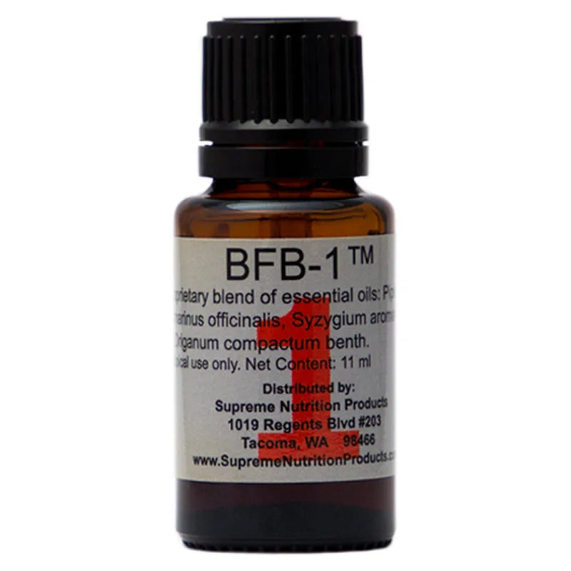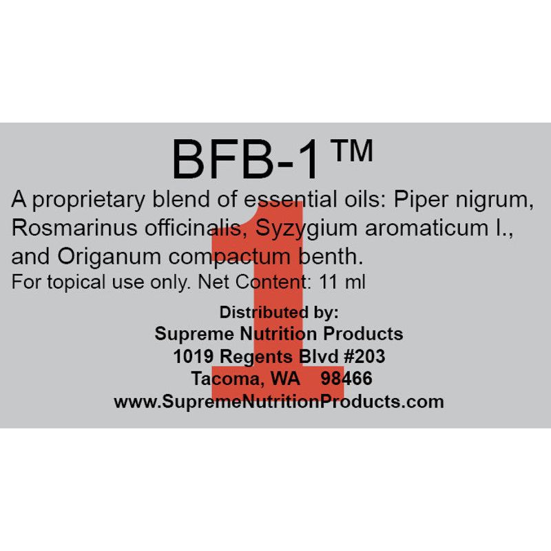 BFB-1™ contains 11 ml of a proprietary blend of Piper nigrum, Rosmarinus officinalis, Syzygium aromaticum l., and Origanum compactum benth. Adults: Day 1: Place 1 drop on the bottom of each big toe, morning and evening. Day 2: Continue to apply one drop on the bottom of each big toe, and add 1 drop on each thumb pad morning and evening. Day 3: In addition to the big toes and thumbs, apply 1 drop on back of each ear lobe, morning and evening. If well tolerated after a few days, oils can be applied directly to areas of concern, but only externally. If a rash develops, try using a carrier oil such as coconut or olive. Mix the BFB oils with the carrier oil, then apply. If using both BFB-1 and BFB-2 at the same time, alternate BFB-1 on one side of the body and BFB-2 on the other as directed above. Children under 12: 1 drop onto the sole of one foot, once daily for the first 3 days, and if tolerated, increase to one drop on the bottom of both feet twice daily. If using both oils, put one drop of BFB1 on sole of right foot, and one drop of BFB2 on sole of left foot once a day. If tolerated, increase to twice daily, alternating feet each time.