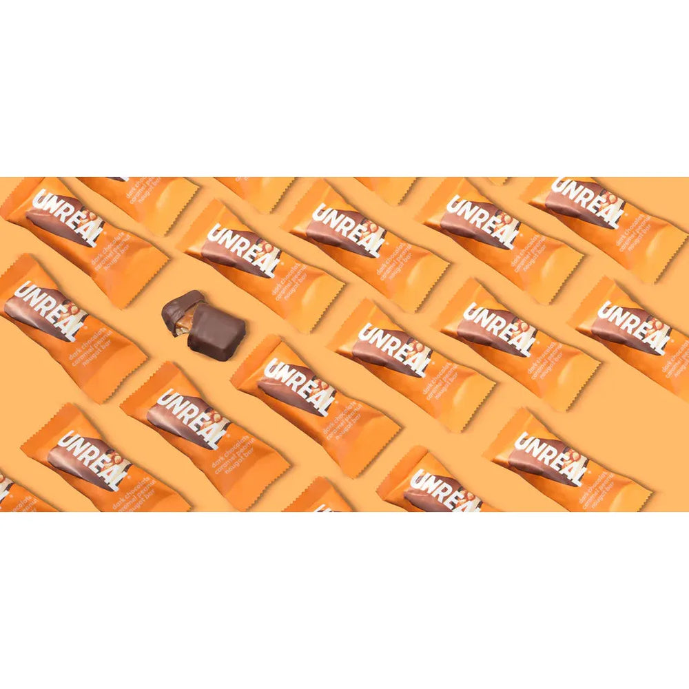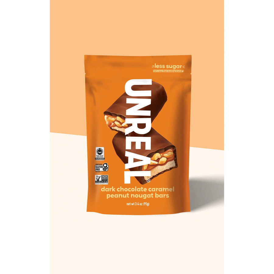 We started unreal so everyone can enjoy out of this world, chocolate snacks without all the sugar and artificial stuff. Our dark chocolate caramel peanut nougat bars are made with over 70% organic ingredients. They’re non-gmo, fair trade and sweetened without corn syrup or sugar alcohols. We just use less sugar. For real. and the taste is unreal!