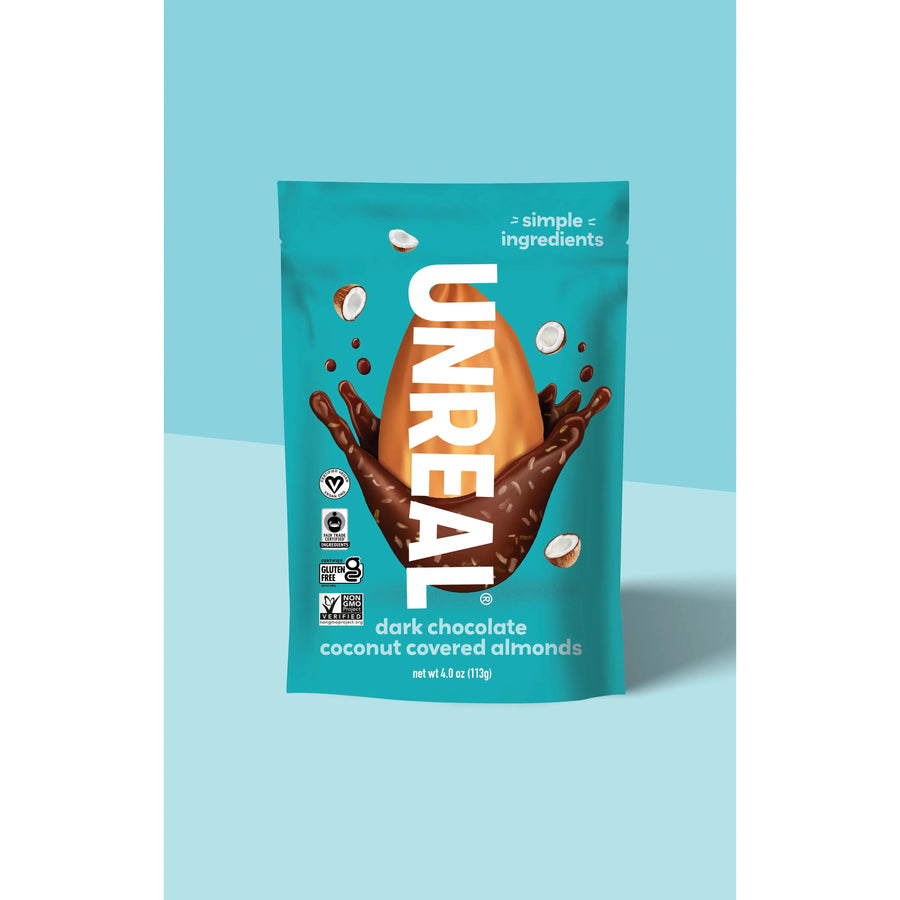 When you’re craving a treat but also need a satisfying snack, dark chocolate coconut almonds have you (chocolate) covered! We take gently roasted California almonds, then coat them with fair trade dark chocolate and bits of organic coconut for a delicious, real-ingredient twist on a classic snack. No one likes messy fingers when they’re on-the-go, so we ditched the cocoa dust and waxy coatings. And as always, we made them with just a handful of simple ingredients, way less sugar, and no artificial sweeteners or flavors. Dark chocolate coconut covered almonds just got unreal.
