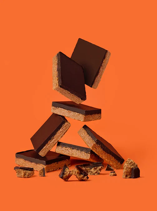 Dark chocolate (unsweetened chocolate, cocoa butter, alkalized cocoa powder, coconut sugar, vanilla powder, sea salt), Sugars (organic tapioca syrup, maple syrup, organic molasses, coconut sugar), Natural peanut butter, Natural peanut flour, Jerusalem artichoke fiber, Organic fava bean protein, Organic carob protein, Coconut oil, Rice bran butter, Shea butter and/or Hazelnut butter, Organic gluten Free Oat flour, Organic apple cider vinegar, Sea salt, Peanut extract, Water.