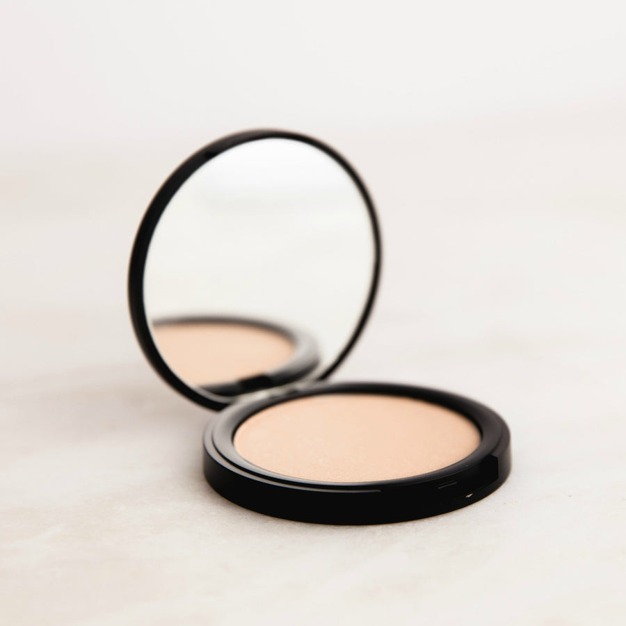 Brighten your complexion with a natural healthy glow. This champagne-colored highlighter diffuses light and looks gorgeous on all skin tones for a youthful and subtle glow. Wear on the cheekbones, bridge of the nose, eyes and shoulders.