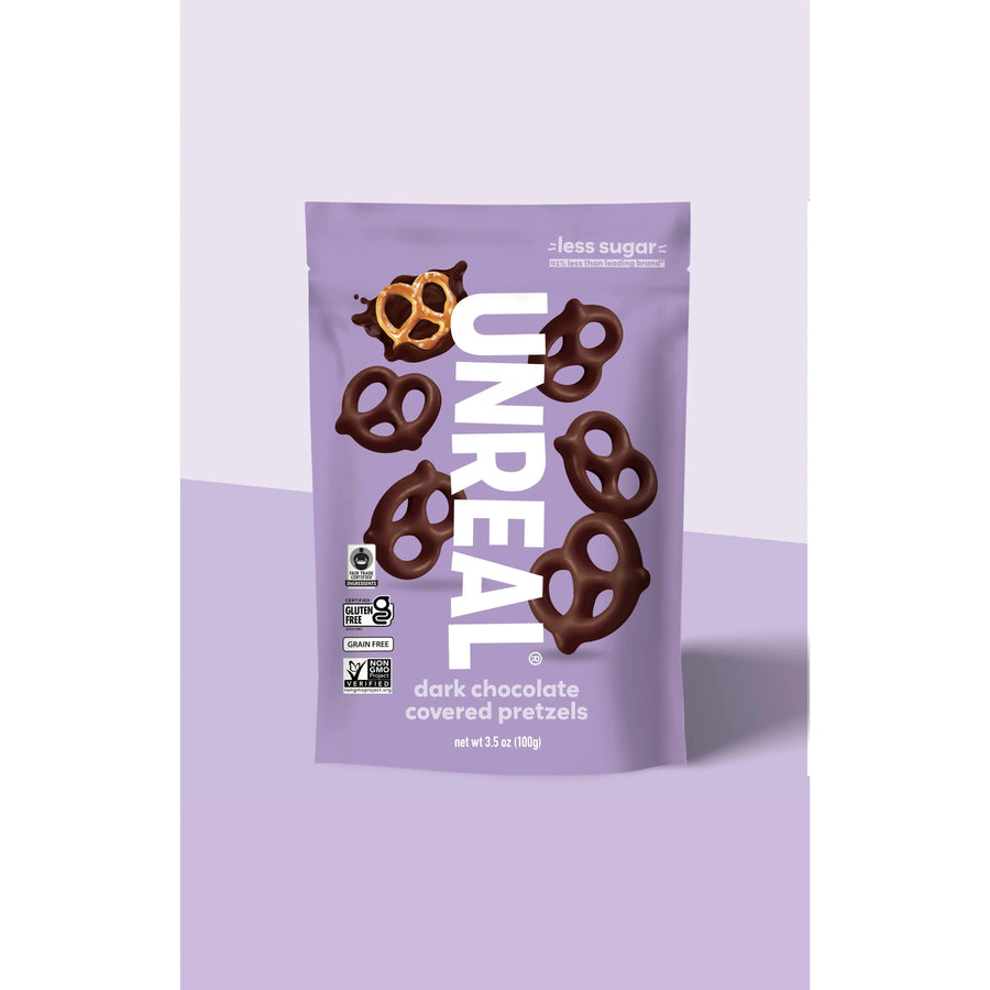 one sweet and salty snack to rule them all! our dark chocolate covered pretzels have everything you crave – crunchy, grain-free pretzels, rich dark chocolate, a sprinkle of salt – and none of the artificial flavors, sugar alcohols, preservatives, soy, or shady ingredients. with less sugar than the leading brand, the anytime snack you love is finally made with simple, real ingredients that love you back.